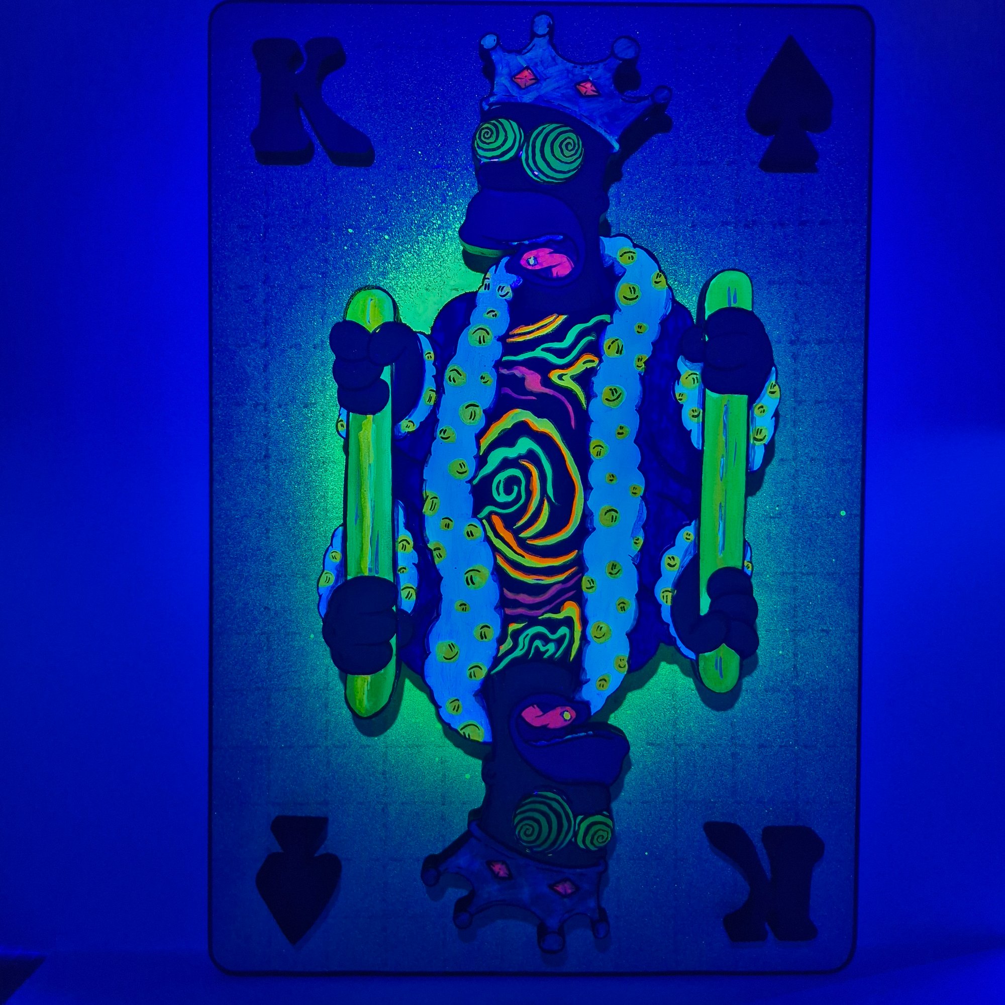 6 individually Hand cut pieces, sanded primed and painted with acrylics and uv paint, making this one fully blacklight reactive (see pics)